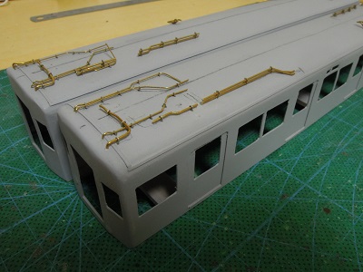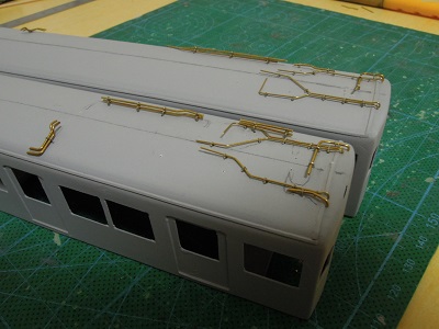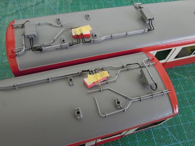 | ・車体箱組(2023/10/26) パンタ間の配管も実装していきます。 |
