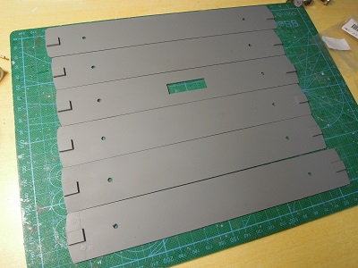 | ・車体箱組(2024/5/25) 窓セルをt=0.2mm透明プラ板から切出していきます。 |