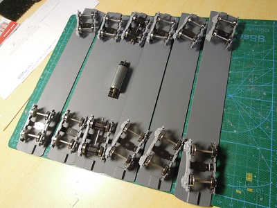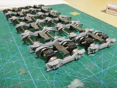 | ・台車組立(2023/12/6) 塗装した台枠、車輪を組立てていきます。 |