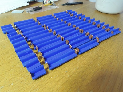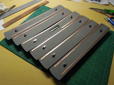 | ・床板組立(2024/3/17) 将来の電飾化にむけて、床板に配線を行います。 基本的に銅テープを使用しました。 |