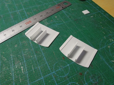 | ・車体組立(2024/4/27) 前面のライトユニットケースを作成。 t=0.5mm、t=1.0mmのプラ板を切出しています。 |