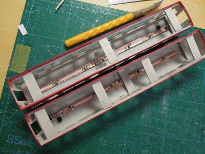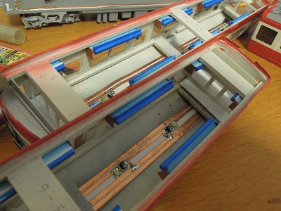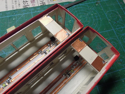 | ・車体組立(2024/5/26) 室内灯ユニットは、中間車から実装。 |