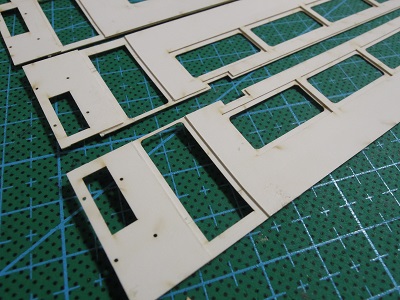 | ・車体箱組(2017/3/9) それぞれのパーツに番号が振ってあるので、順番通りに 積層すればいいように構成されています。 |