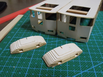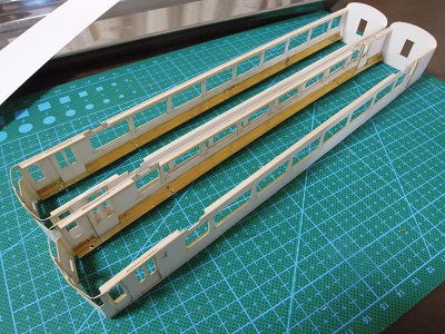 | ・車体箱組(2017/3/9) 2両分のおでこが完成。 |