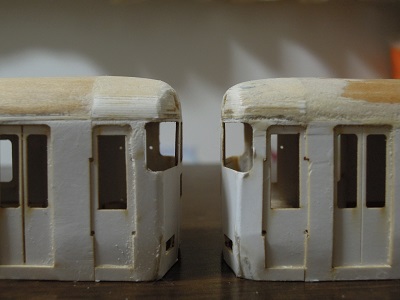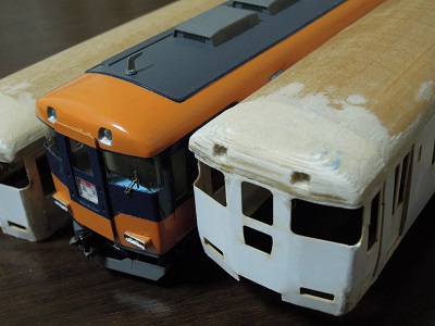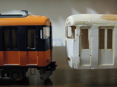 | ・車体箱組(2017/3/15) 製作見本のAkaneko様製作車両と見比べて、削り具合を 確認していきます。 |