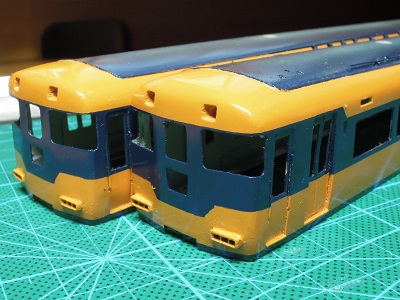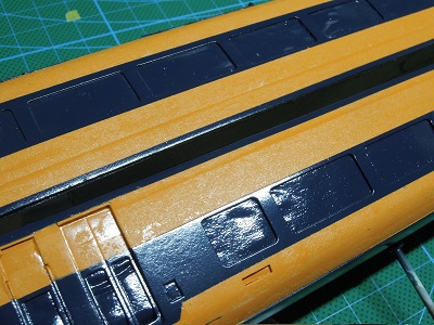 | ・車体塗装(2017/7/23) 続いて窓周りのブルーに向けてマスキング。 |