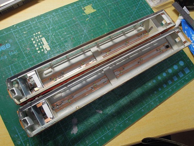 | ・車体組立(2024/1/20) 室内灯問題で放置していましたが、昨今の紙基板方式 で進めることにしました。 ライトユニット装着のため、一旦シート類を取り外します。 |