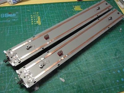 | ・車体組立(2024/1/28) 床板の電源ライン配線パターン。 |
