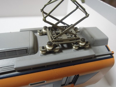 塗装したパンタ台と碍子を再組立て。 |
