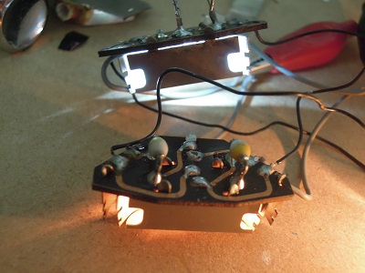 右のユニットに実装した砲弾型LEDを取り外し、チップLED