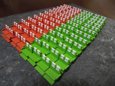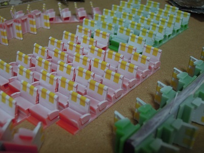 マスキングを外して、4両分のシート完成。 |