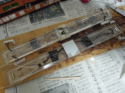 床板を取り付け、車輪から集電。