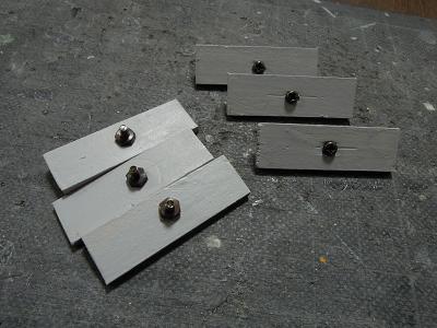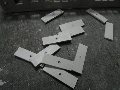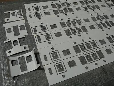 ライトユニット類製作 ・仕切り板各種を下地に銀を塗った上に室内パネル色で 塗装しておきます。 |