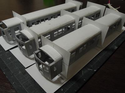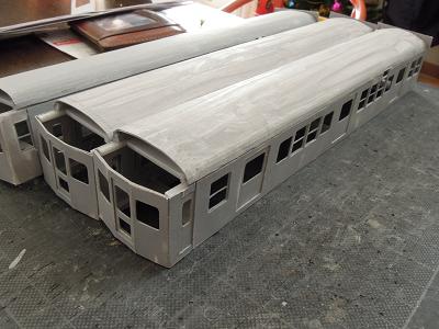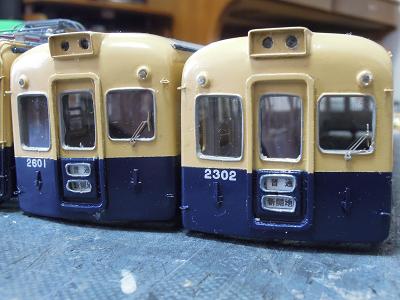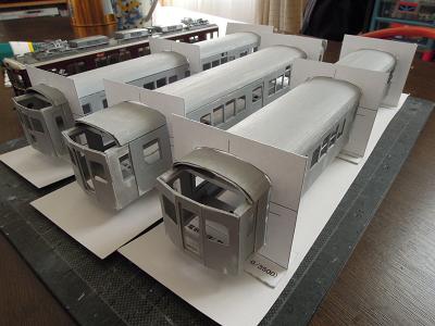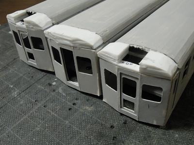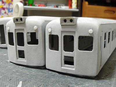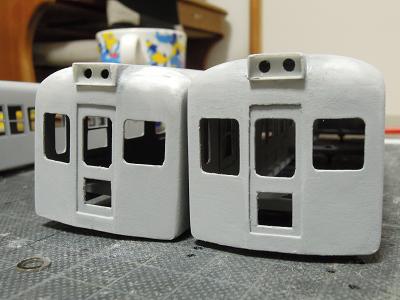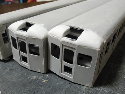 車体前頭部製作 ・荒削り完了。 写真は先頭車の2302と2601。 |