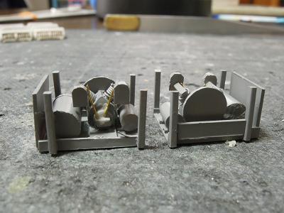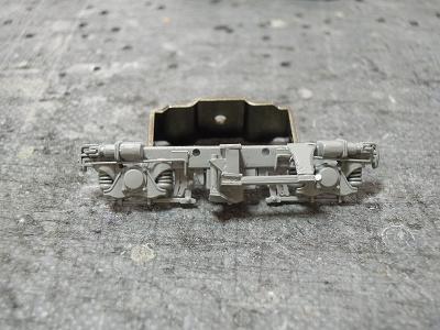 台車加工 ・枕バネ部を実装し、塗装完了。 塗料はマッハNo.234:灰色1号を使用しています。 |
