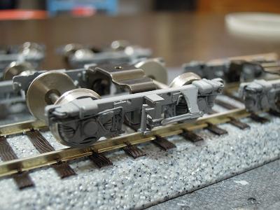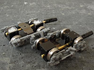 台車組立 ・塗装したパーツを組合わ、台車組立完了。 写真はT車用。 |
