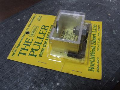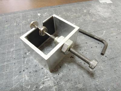 動力台車製作 ・車輪を治具にセットし、ネジを締めて車輪から車軸を 押し出します。 なんともシンプルな治具ですが、かなり気持ちよく車軸が 外せます。 ちなみに車輪はカツミ製を用いています。 |