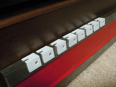 側面補強材の接着 ・側板とプラ角材はゴム系、側板と木材は木工用ボンドで 接着しています。 接着後、クリップで固定し1昼夜程度寝かしておきます。 |