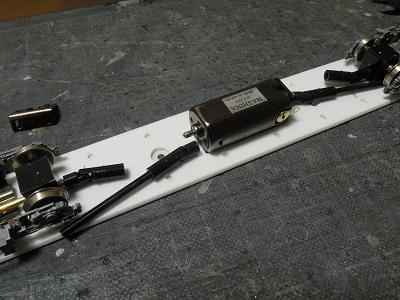 動力化 ・そのまま実装すると、腰高感が強いので、前作3058Fと 同様に、床板にギアボックスの逃げ穴を設け、高さを 下げます。 これにて動力化は一旦完了です。 2013-6/16 |