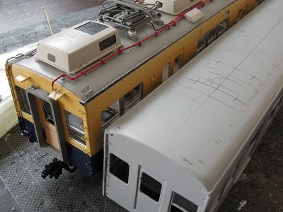下地処理その4 ・最終的にサーフェイサ1000を吹付け下地処理完了です。 阪急8002F製作と阪急7019F照明改良工事と平行して 作業を行っている為、ここまで半年ぐらい要しています。 2013-5/26 |