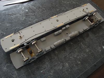 台車加工 ・再度仮組み。 中間連結器は、カツミのACEカプラーを使用しています。 |