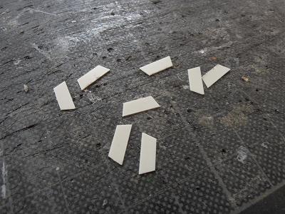 屋根板製作 ・屋根板接着時の補強用に併せて床板も製作します。 t=1.2mmとt=0.5mmのプラ板を切り出し、貼り合わせ ています。 |