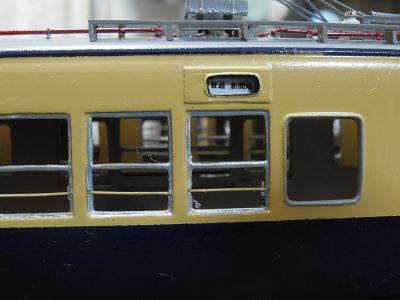 方向幕、ワイパー実装 ・方向幕部に車体内側から字幕を接着します。 またわーパーにはエンドウの電車用Aを使用して います。 |