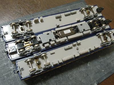 床板組立 ・MPウエイトや床下機器類を装備して床板の工事は ほぼ完了です。 ウエイトを実装することで、粘着性があがり、集電 性能が向上されました。 |