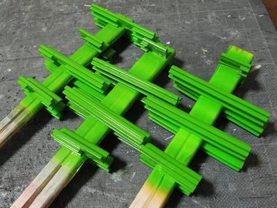 車体塗装 ・写真は幌枠。 こちらも塗り分け完了です。 |