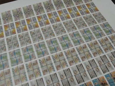 室内灯ユニットの製作 ・室内灯は今回も夕庵方式にします。 天井の絵ををそれらしく作成して印刷。 プリントアウトしたものをt=0.5mmプラ板に接着して います。 車体構造上2分割とします。 |