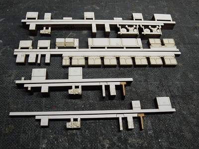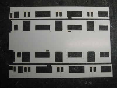 | ・車体箱組(2017/10/18) 車体パーツの切り出し。 こちらはM車用中間車。 車体パーツの切り出し。 こちらは2000系車体のT車用中間車。 |
