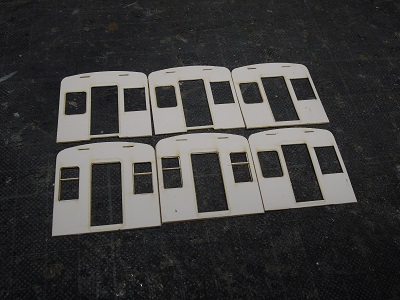 | ・車体箱組(2017/10/22) 妻板4両分の接着。 |