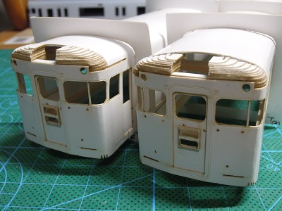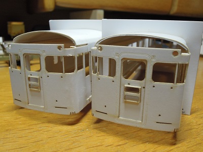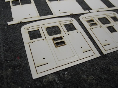 | ・車体箱組・車体箱組(2017/10/18) 2000系車体の妻面は、窓サッシの段表現が出来るよう、3枚 貼合わせ構造になっています。 |