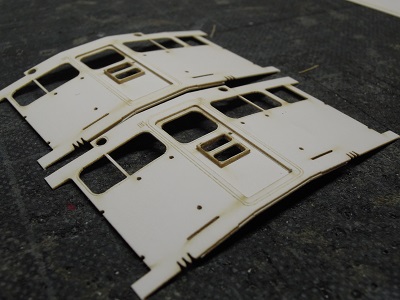 | ・車体箱組(2017/10/18) まずは車体パーツの切り出し。 こちらは先頭車。 |