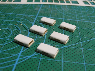 | ・車体箱組(2017/11/25) Hゴムパーツ等を接着し、仕上げに#1000のサフェを吹いて います。 |