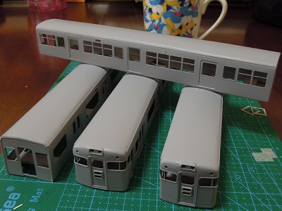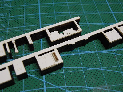 | ・車体箱組(2017/10/18) 車体パーツの切り出し。 こちらはM車用中間車。 |