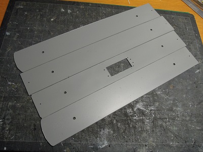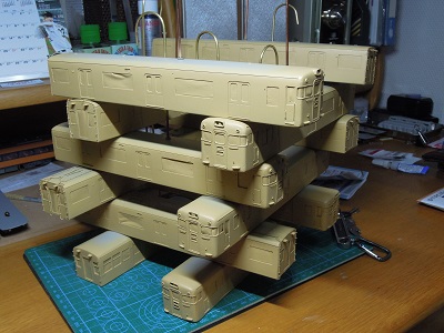 | ・車体箱組(2017/11/9) 車体はサフェを吹いては耐水ペーパーで磨きを繰り返します。 |