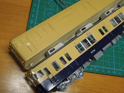 | ・車体組立(2018/3/5) 前作の3058Fと比べてみましたが、そう変わらないようです。 ということで、そのままブルーの塗装に移行します。 |