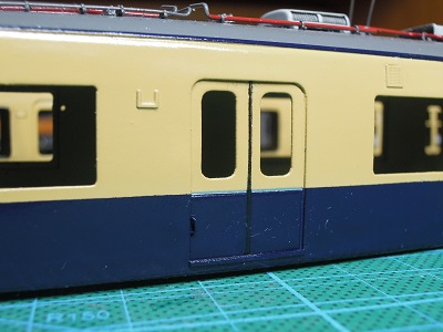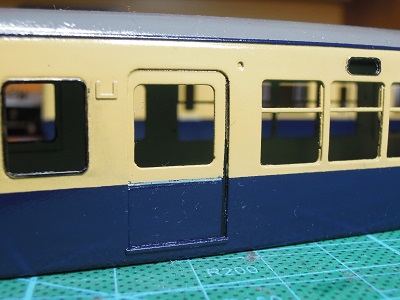 | ・車体塗装(2018/3/5) 塗装はいつも通り、室内アイボリーを吹いたのち、車体 クリーム→車体ブルー→屋根グレーの順です。 室内アイボリー:GM21 アイボリーA 車体クリーム:マッハNo.85 山陽クリーム 車体ブルー:マッハNo.86 山陽ブルー 屋根グレー:GM9 ねずみ1号 |