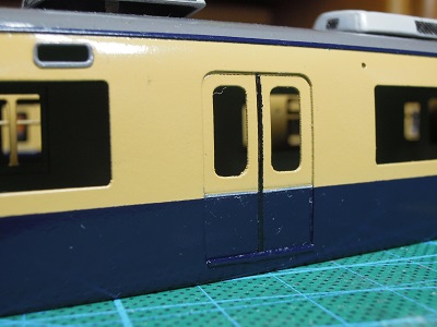 | ・車体組立(2018/4/18) 車体Hゴムなどに色入れを行い、屋根上機器類やラインデリア カバーなどを実装します。 また客用ドアのゴムには黒の色入れを、ドアレールには、銀帯 のデカールを貼り付けています。 写真は3021。 |