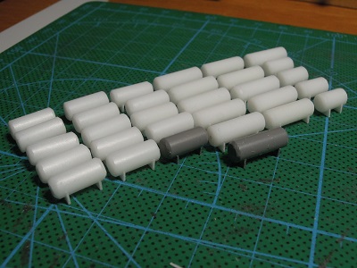 | ・車体組立(2018/7/15) 型紙には付属しないタンク類は、プラ丸棒を成型しています。 これらのパーツを取付て、落成となります。 |