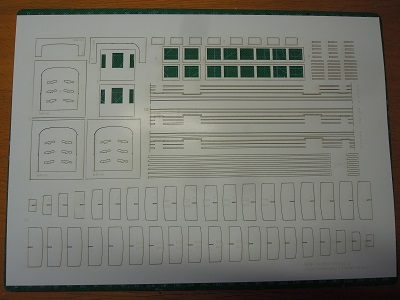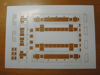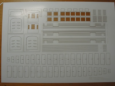 ・阪神1101形型紙 素材は自作データ、レーザーカットしたものです。 ペーパールーフとし、表裏2枚貼合せる構造です。 |