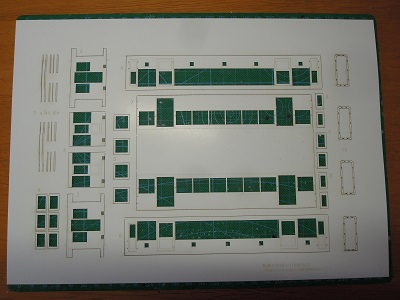 ・車体箱組(2020/8/30) 車体型紙を切出し、表紙と裏紙を針わせます。 |