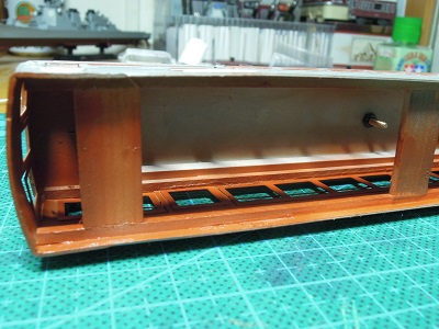・車体塗装(2020/11/22) 室内のブラウンからスタート。 |