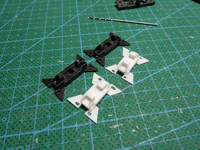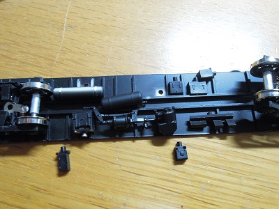 ・台車改軌(2020/12/29) 台車ですが13mmに改軌します。 枕梁を13mm用に詰める必要がありますが、ダイキャスト パーツを加工するのは難しいので、プラ板で同様の形状 のマクラバリを作成します。 |