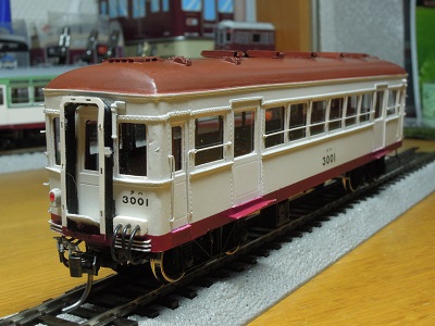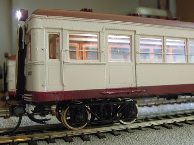 ・落成(2021/1/18) 車体に窓セルを貼付け、台車を実装した床板と組合せて 落成です。 当鉄道の1/80車両として、2両目の旧型車となります。 |