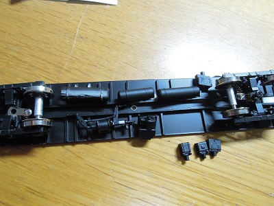 ・台車改軌(2020/12/31) プラ板製枕梁を塗装し、仮組みしてみました。 |