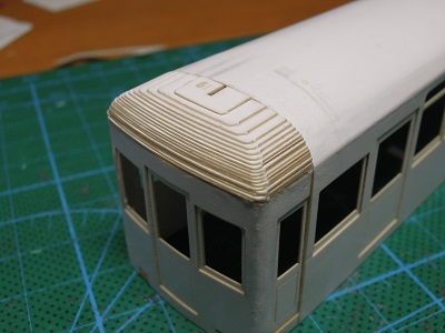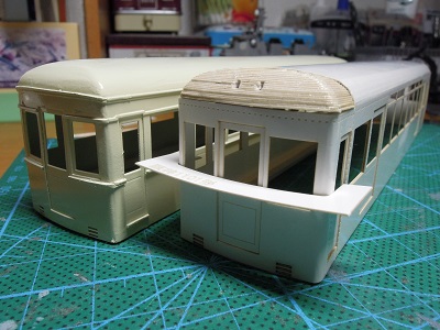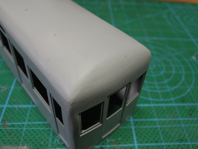 ・車体箱組[量産版](2020/7/6) おでこと屋根Rを合わせました。 |