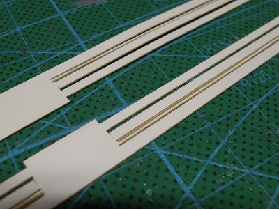 ・車体箱組[試作版](2020/6/20~2020/6./21) シルおよび雨樋の断面P形状は、紙帯の上に紙線を 貼る事で表現します。 >ちょっと無理がありますが。 |