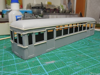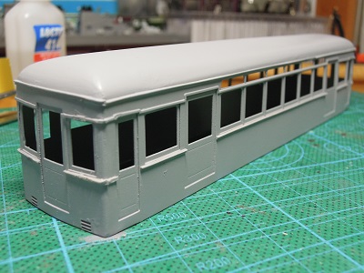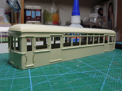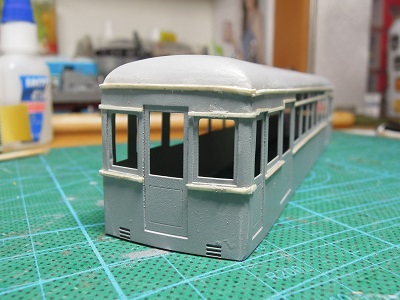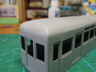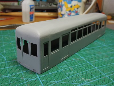 ・車体箱組[試作版](2020/6/20~2020/6./21) 仕上げとして全体に#1000のサフェを吹きます。 |